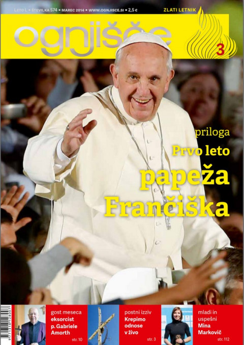 Druga tematika, ki zaznamuje marčevsko Ognjišče, pa je prva obletnica izvolitve papeža Frančiška, ki se je bomo spominjali 13. marca. O prvem letu njegovega papeževanja govori tokratna priloga. Trenutno vam lahko ponudimo kar štiri knjige o sedanjem priljubljenem papežu. Prva je knjiga 80 krajših zgodb iz papeževega življenja z naslovom Pripovedi o papežu Frančišku. Rosario Carello v osemdesetih zelo kratkih pripovedih po posameznih geslih predstavlja stvari in dogodke, ki so zaznamovale papeža. Zelo privlačno in zanimivo branje. Podobno branje je druga knjiga Papež se predstavi mladim. Že naslov pove, da je namenjena predvsem mladim, a bo zaradi zanimivega sloga in tematike (npr. Kaj dela papež in kako poteka njegov dan? Katere jezike govori? …) zanimiva tudi za odrasle. Dokumentarne barvne ilustracije knjigi še povečujejo vrednost.