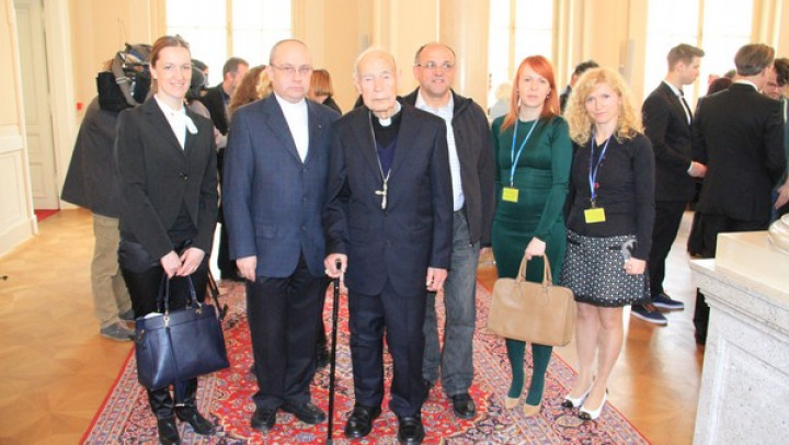 Reda za zasluge, ki ga je prejel škof Jožef Smej, se skupaj z njim veselijo slovenski škofje ter duhovniki in verniki. Nekaj se jih je ob njem zbralo tudi pri slovesnosti v predsedniški palači.