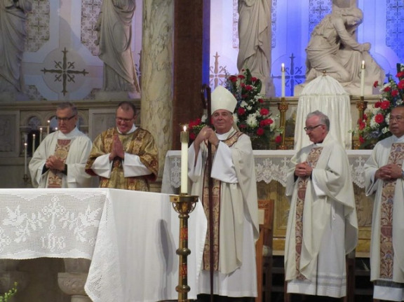 Ob nabito polni cerkvi se je pelo ob zvokih orgel, godalnega orkestra in godbe na pihala. Še sam škof se je zahvalil za ubrano, mogočno petje. Med nagovorom se je celo pošalil glede prvega župnika Hribarja in rekel, da mu je tedanji škof Horstman ukazal, naj ustanovi novo župnijo. Kako in kaj, je bil sam sebi pripisan. Škof Perez je dejal, da sam tega nebi utegnil storiti.