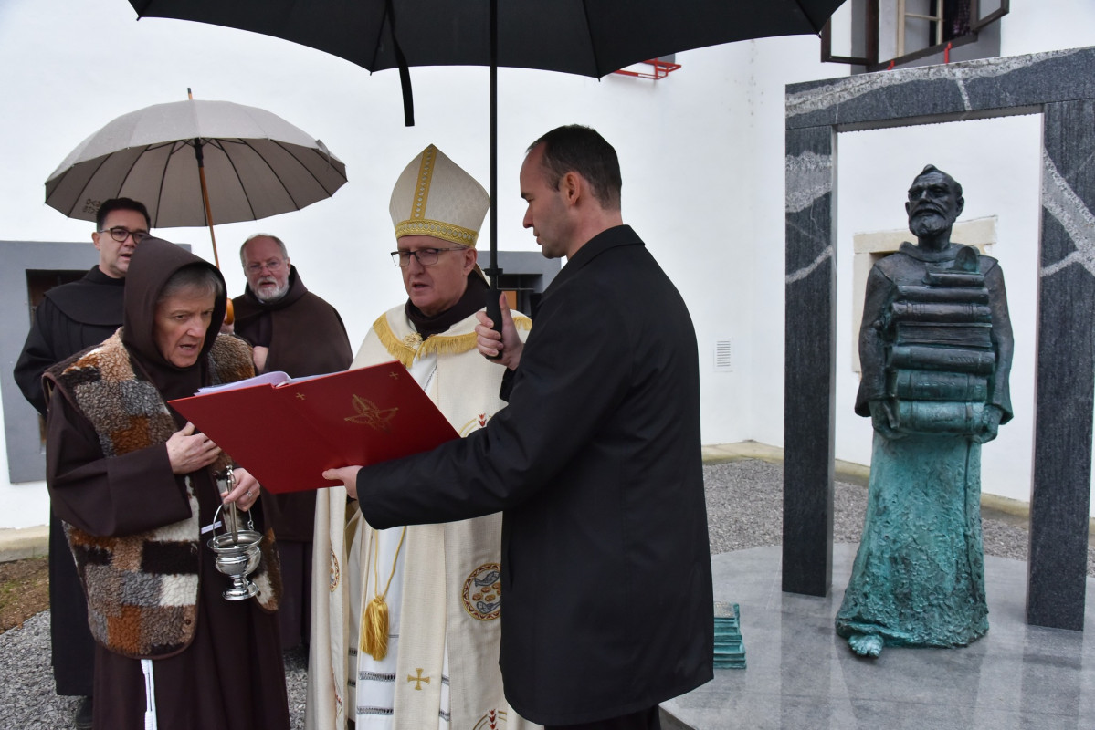 Na Frančiškanskem trgu 1 v Novem mestu so slovesno odkrili kip Frančiškana z rastočo knjigo. Z njim so se Novomeščani poklonili patrom, ki so prišli v Novo mesto pred 550 leti, ko so se umikali pred Turki. O njihovi prepoznavni vlogi je spregovoril akademik Milček Komelj, kip pa je blagoslovil nadškof p. Stanislav Zore, tudi sam frančiškan.