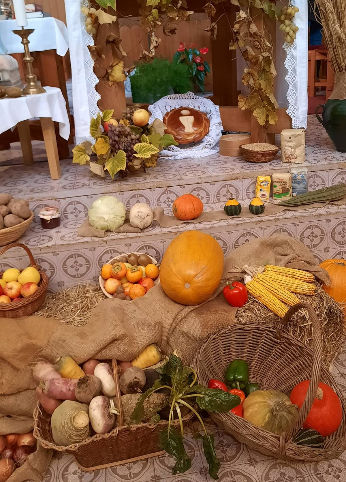 Zahvalna nedelja je vsako leto v naših cerkvah tudi prava paša za oči. Prostore pred oltarji ali stanske oltarje krasilke in krasilci vedno znova napolnijo z zemeljskimi pridelki in ostalimi dobrinami. In pri tem so vedno znova ustvarjalni in inovativni.