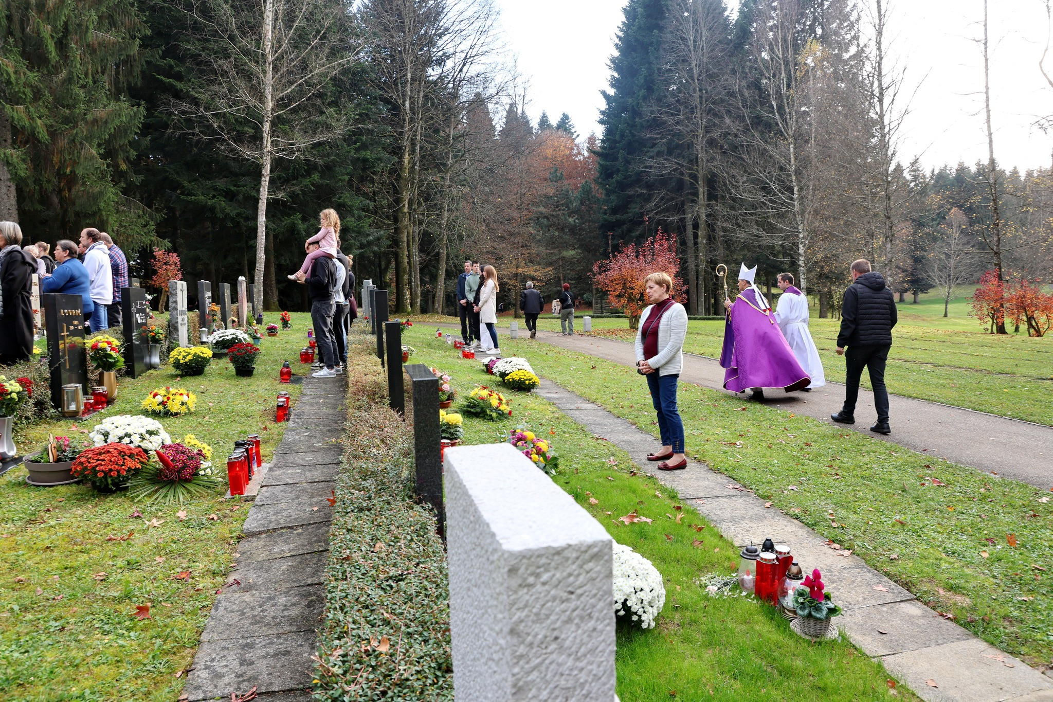 Po sveti maši je sledila procesija na pokopališče, kjer je škof Saje molil za vse pokojne ter obhodil in blagoslovil grobove. Posebej se je zaustavil v molitvi pri grobu nedavno ubitega Novomeščana Aleša Šutarja. Srečal se je tudi z njegovo družino.