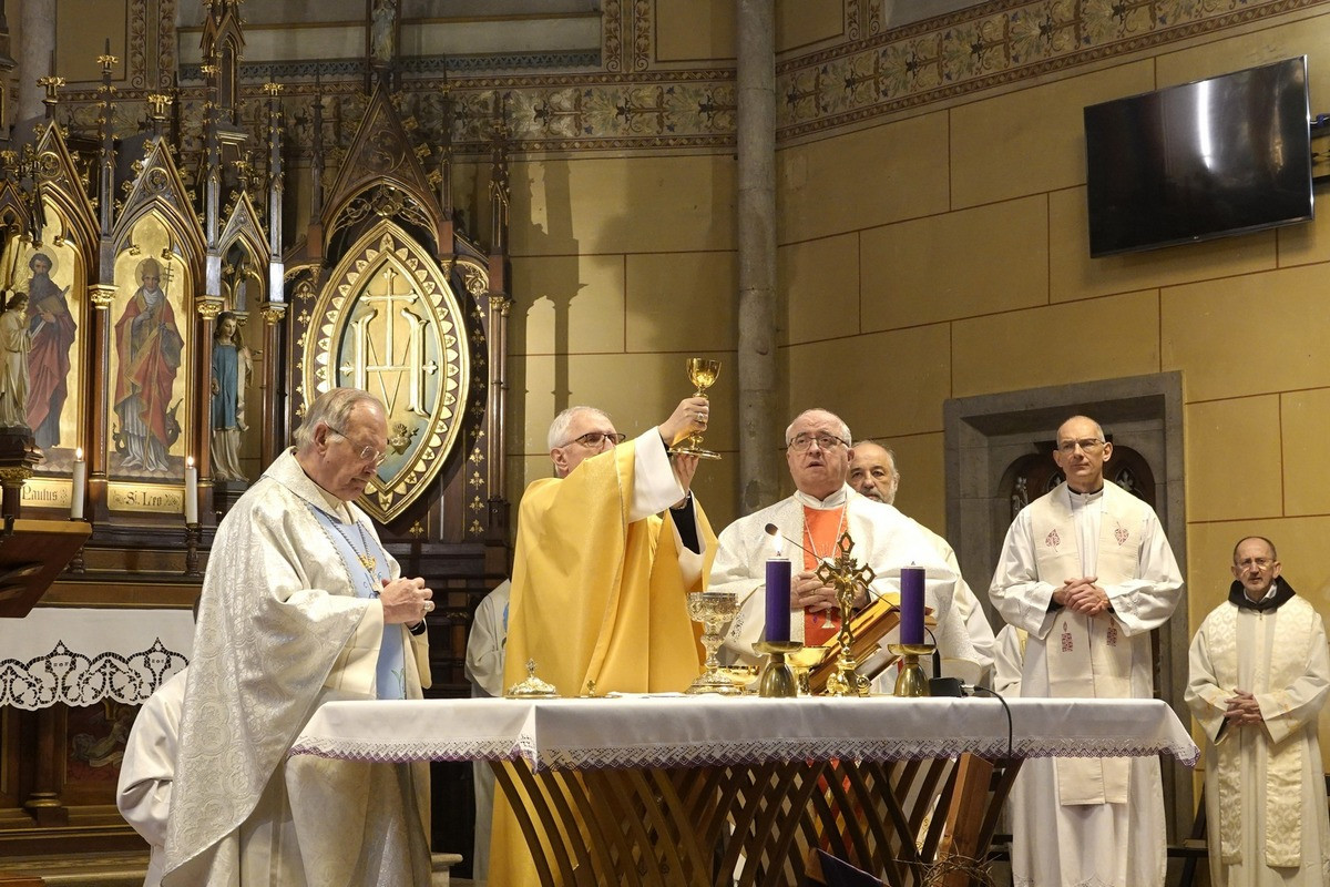 Prejšnjo soboto je v cerkvi Srca Jezusovega na Taboru v Ljubljani potekala slovesnost ob 100-letnici Družbe Marijinih sester čudodelne svetinje. Ob oltarju so se poleg sester redovnic zbrali ljubljanski nadškof Stanislav Zore, upokojeni nadškof Anton Stres, pomožni škof Franc Šuštar ter drugi številni duhovniki.