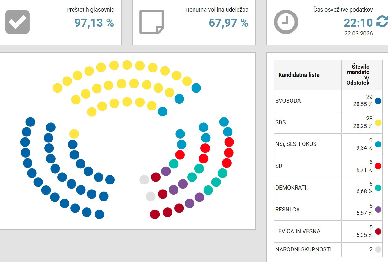 22:13: 97 odstotkov preštetih glasov