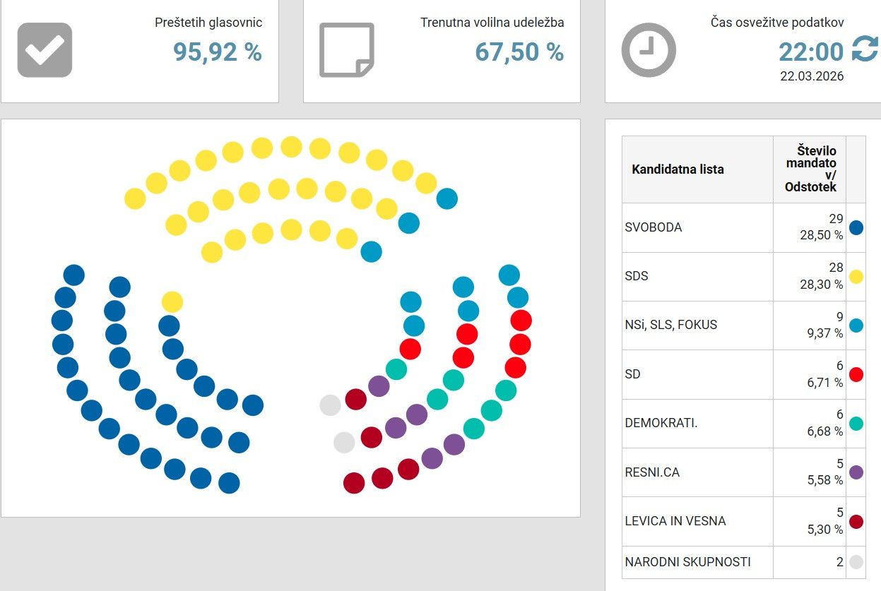 22:04: 95 odsotkov preštetih glasov