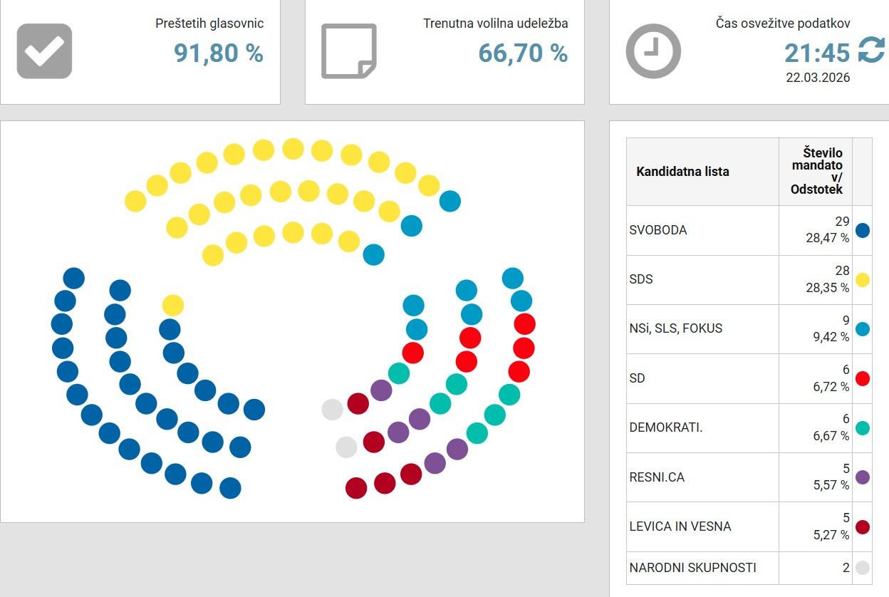 21:48: 91 odstotkov preštetih glasov